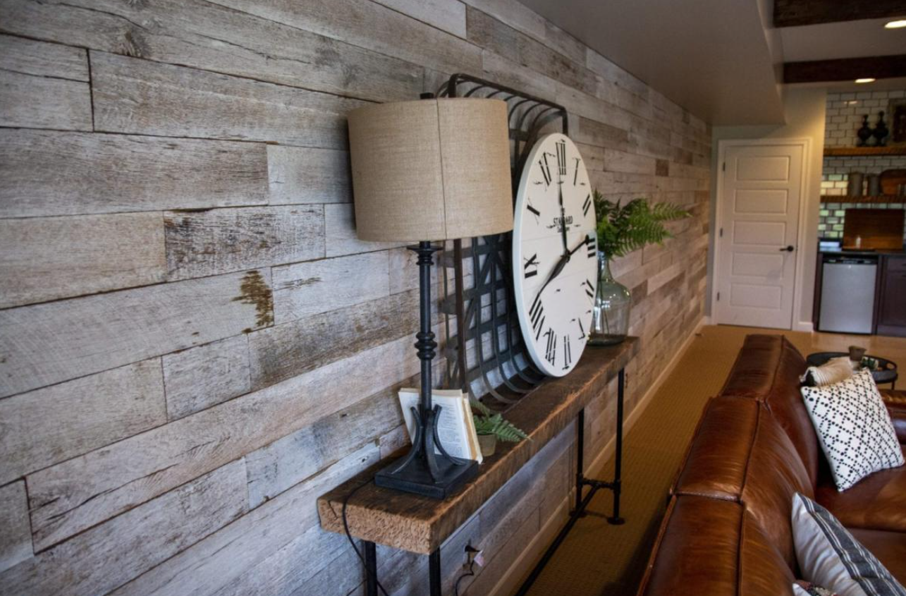 Modern Timber Craft is not responsible for rustic white barnwood paneling installation. Sub surface preparation is important as boards are not sanded flat.