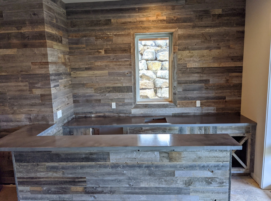Modern Timber Craft is not responsible for weathered grey barnwood paneling installation. Sub surface preparation is important as boards are not sanded flat.
